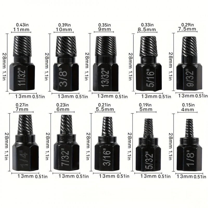️ Ha te is unod már, hogy mindig csak a szülőknek kell segíteni a ház körüli munkákban, akkor ezt a 10 darabos Törtcsavar Eltávolító Készletet imádni fogod! Ezek a törtcsavar eltávolítók segítenek könnyedén kiszedni a szorosan beragadt csavarokat és törtcsavarokat, így gyorsan és egyszerűen végezhetsz majd a javítási munkákkal. A készlet minden fontos eszközt tartalmaz, amire csak szükséged lehet a munkához.