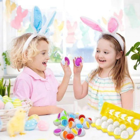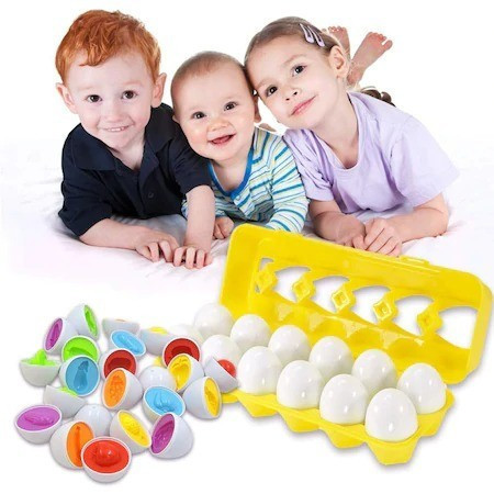 Gyermeked ezekkel a játék tojásokkal könnyedén tanulhat a szinekről , a formákról , ugyan akkor fejlesztve a kéz-szem koordinációt.