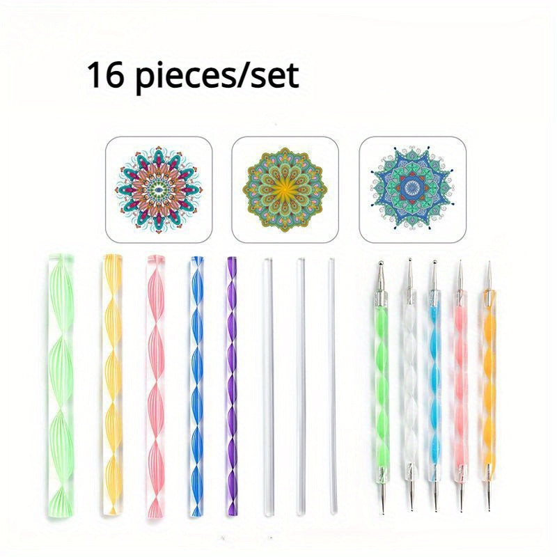 16 részes Mandala pöttyöző szett akril rudakkal, stifttel és 3 festősablonnal