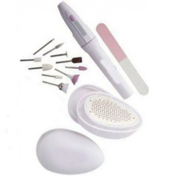 2 darab sarokreszelőt, 4 darab bőrpuhító bőrradírozó párnát, 1 darab elemes körömformázó eszközt, 10 darab különböző polírozófejet és 1 darab kézi körömpolírozót.