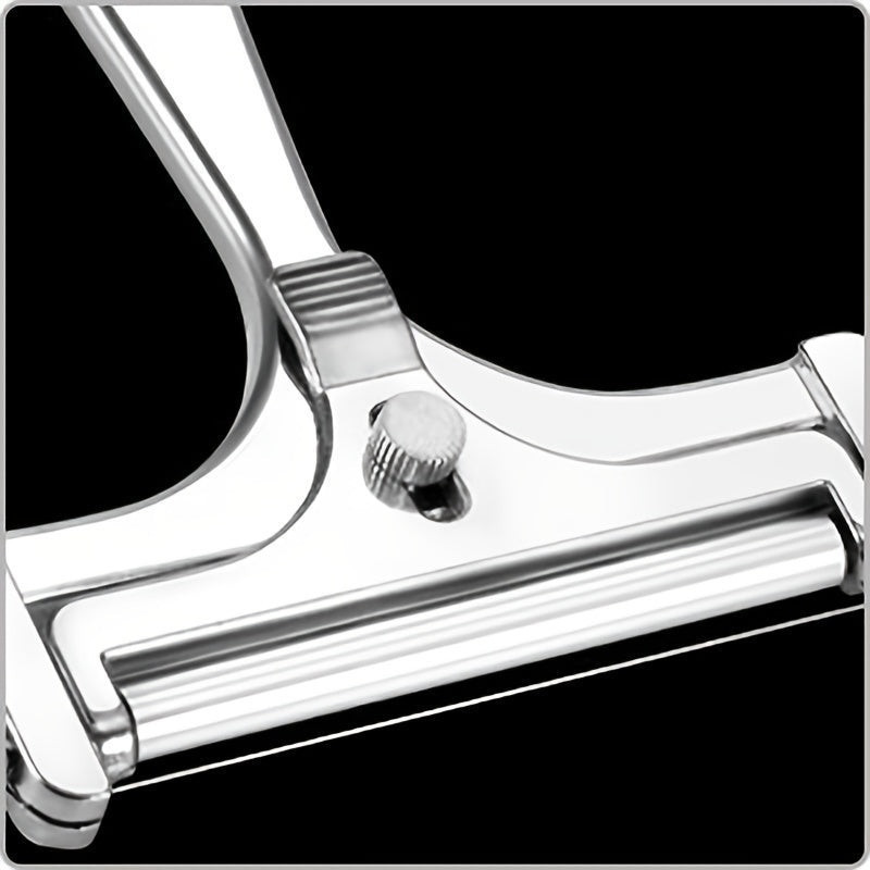 Ez a sajtszeletelő egy igazi must-have konyhai eszköz minden sajt imádó számára! A sajtszeletelő állítható vastagsággal rendelkezik, így könnyedén vághatod a sajtot a kívánt vastagságú szeletekre. A tartós rozsdamentes acél pengének köszönhetően pedig könnyedén vághatsz keményebb sajtokat is, anélkül, hogy elcsúszna a pengén a sajt.