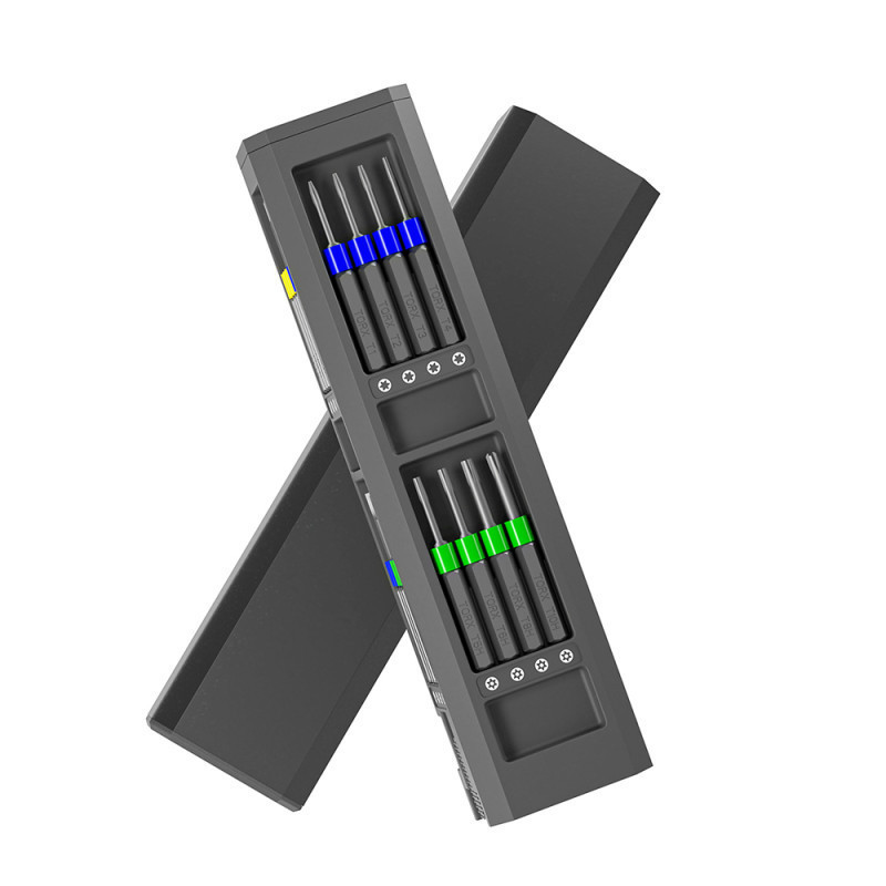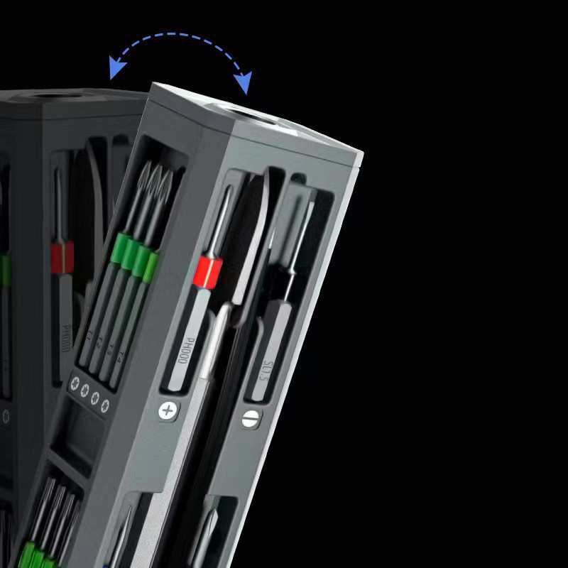 Ez a csavarhúzó készlet 28db hagyományos és precíziós bitet, 1db csavarhúzót, 1db csipeszt és 1db kifeszítőt tartalmaz. A továbbfejlesztett meghosszabbított fúrószár 10 mm-rel hosszabb, mint a hagyományos, ami kényelmes a szétszereléshez és a mély csavarok összeszereléséhez.