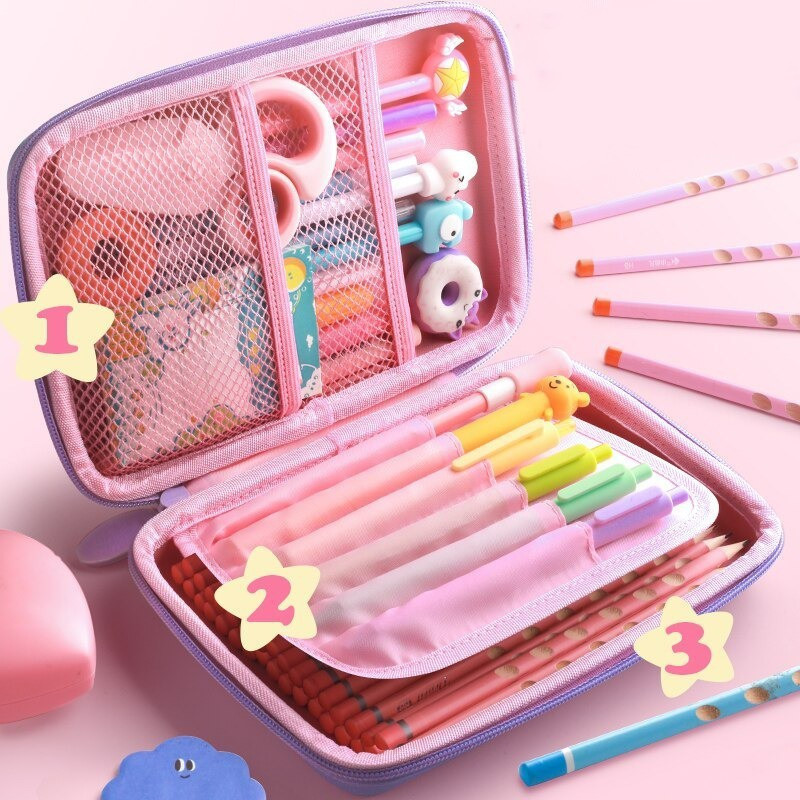 A hálós részbe nem csak ceruzákat és tollakat, hanem kisebb jegyzettömbök, olló is elfér. A középső elválasztó részben remek helye lesz a tollaknak, míg a harmadik részen a nagyobb színesceruza készlet is el fog férni.
