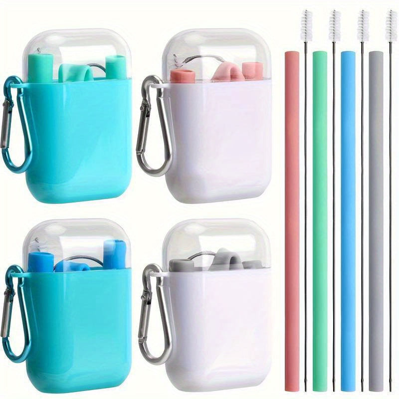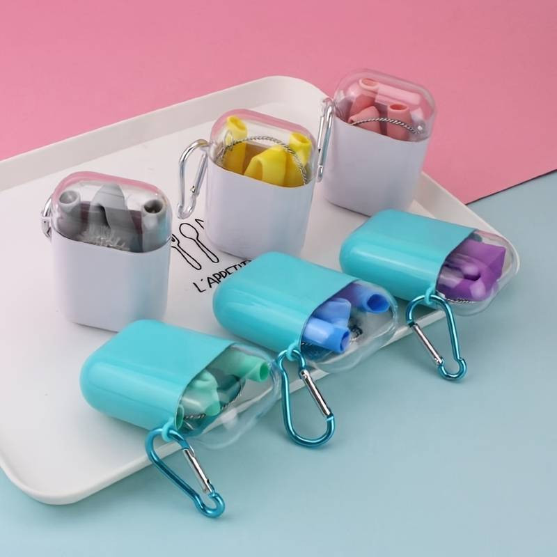 4db Szilikon Szívószál Készlet Tokkal