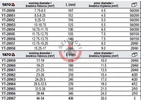 - Munkaátmérő: 29,5 mm - 33,5 mm