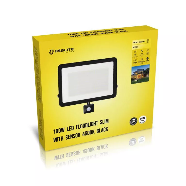 Asalite LED Reflektor Slim 100W 4500K (9000 lumen) + Mozgásérzékelő Szenzor
