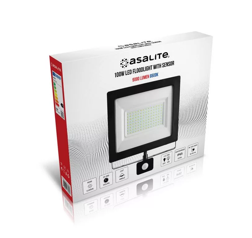 Asalite LED Reflektor Slim 100W 6500K (9000 lumen) + Mozgásérzékelő Szenzor