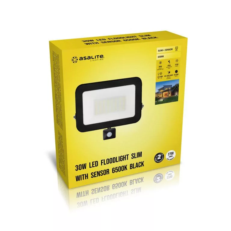 Asalite LED Reflektor Slim 30W 6500K (2700 lumen) + Mozgásérzékelő Szenzor