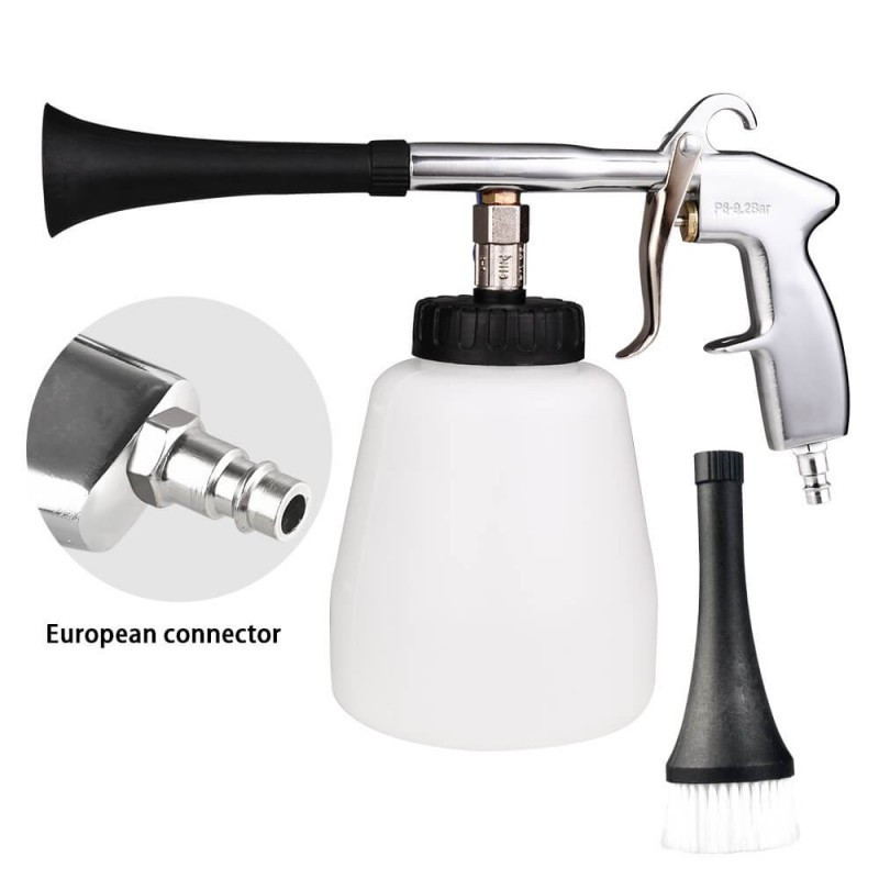 Töltsd fel a kütyü tartályát vízzel, valamint kedvenc tisztítószereddel és máris használhatod! (A tisztítószer nem tartozéka a csomagnak). Ezt követően csatlakoztasd a kütyüt a kompresszorra. Három különböző csatlakozó közül tudsz választani, hogy megtaláld azt, amelyik a te gépedhez illik.
