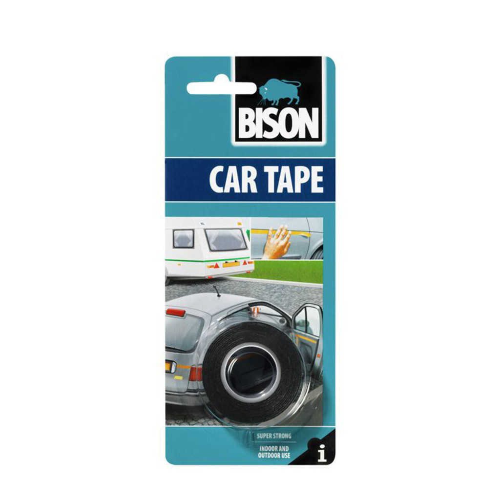 A BISON Car Tape egy UV-és időjárásellenálló,fekete színű kétoldalú öntapadós ragasztószalag, mellyel biztonságosan javíthatés rögzíthet különböző járműalkatrészeket, például pótféklámpát, márkajelzőtáblát, közlekedési-és figyelmeztetőtáblákat, hőmérőt, vagy dekorációselemeket.