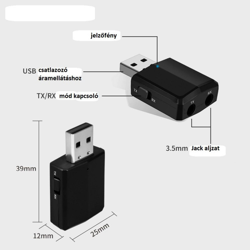 1.Adó üzemmód (TX): Vezeték nélküli hangátvitel a nem Bluetoothos eszközről, Bluetoothos eszközre. (pl fejhallgató)
