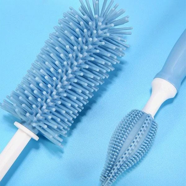 A szett két szilikon kefét tartalmaz. Az egyik az üveg tisztítására szolgál. A kisebb kefe kialakítása pedig lehetővé teszi, hogy a cumi minden pontjáról el tudd távolítani a maradékot.