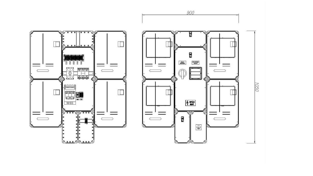 Két-négy felhasználási helyes M63A csoportos mérés rendszer, felületre szerelt kivitelben,