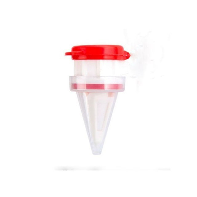Egyszerűen csak vedd le a védőkupakot az eszköz hegyesebb végéről, szúrd bele a dobozba és már használhatod is, a szilikonos szigetelő gyűrű csepegésmentes töltést biztosít.