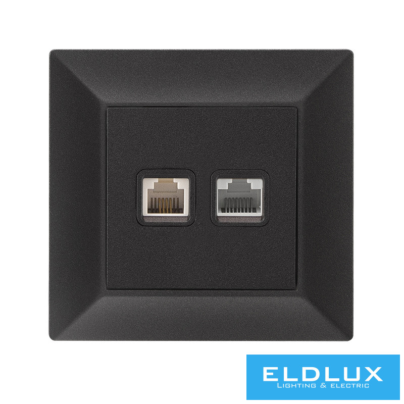 ELDLUX ELDGROUND RJ11 TEL + RJ45 Cat.5e UTP aljzat fekete