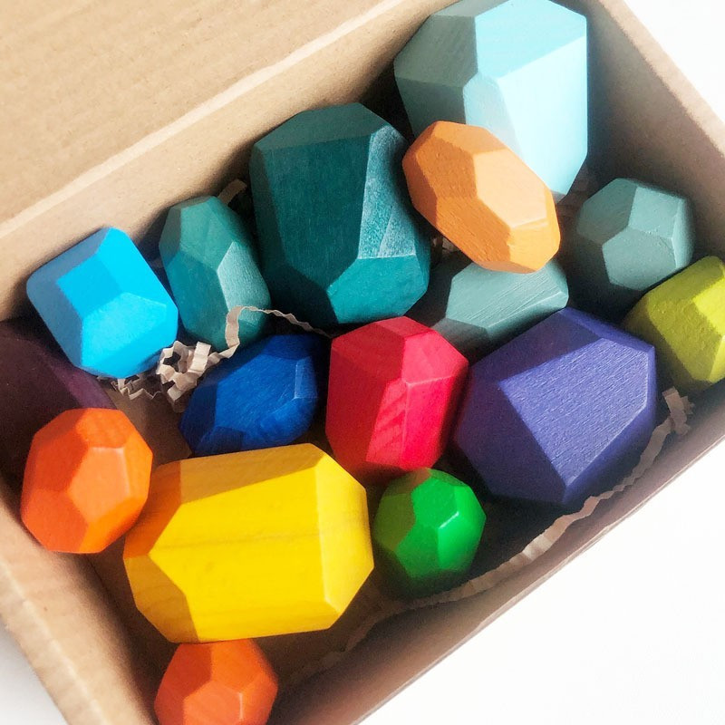 A készlet 16 db különböző méretű, színes sziklát tartalmaz. Mindegyik egyedülálló a maga méretével és alakjával.