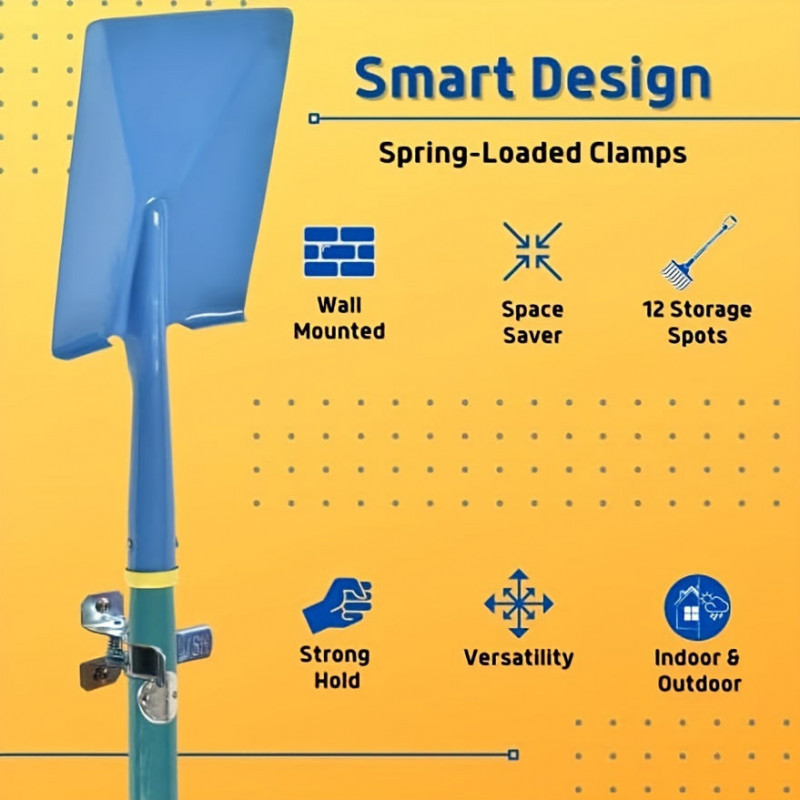 • Többfunkciós dizájn: A kampók segítségével egyszerűen tárolhatsz és rendezhetsz bármilyen szerszámot, legyen szó egy gereblyéről, seprűről vagy éppen felmosóról.