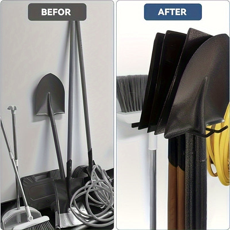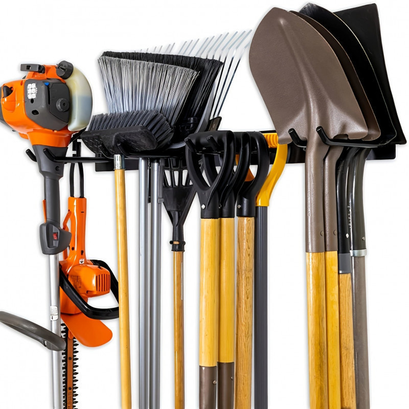 A Falra szerelhető szerszámtároló fogas többfunkciós, és tökéletesen alkalmas a kerti szerszámok rendszerezett tárolására. Nem kell többé a gereblyét a sarokba hajítanod vagy a fűnyírót a bokor mögé dugnod! Ezzel a fogassal minden eszközöd rendben lesz és mindig kéznél lesznek, amikor szükséged van rájuk.