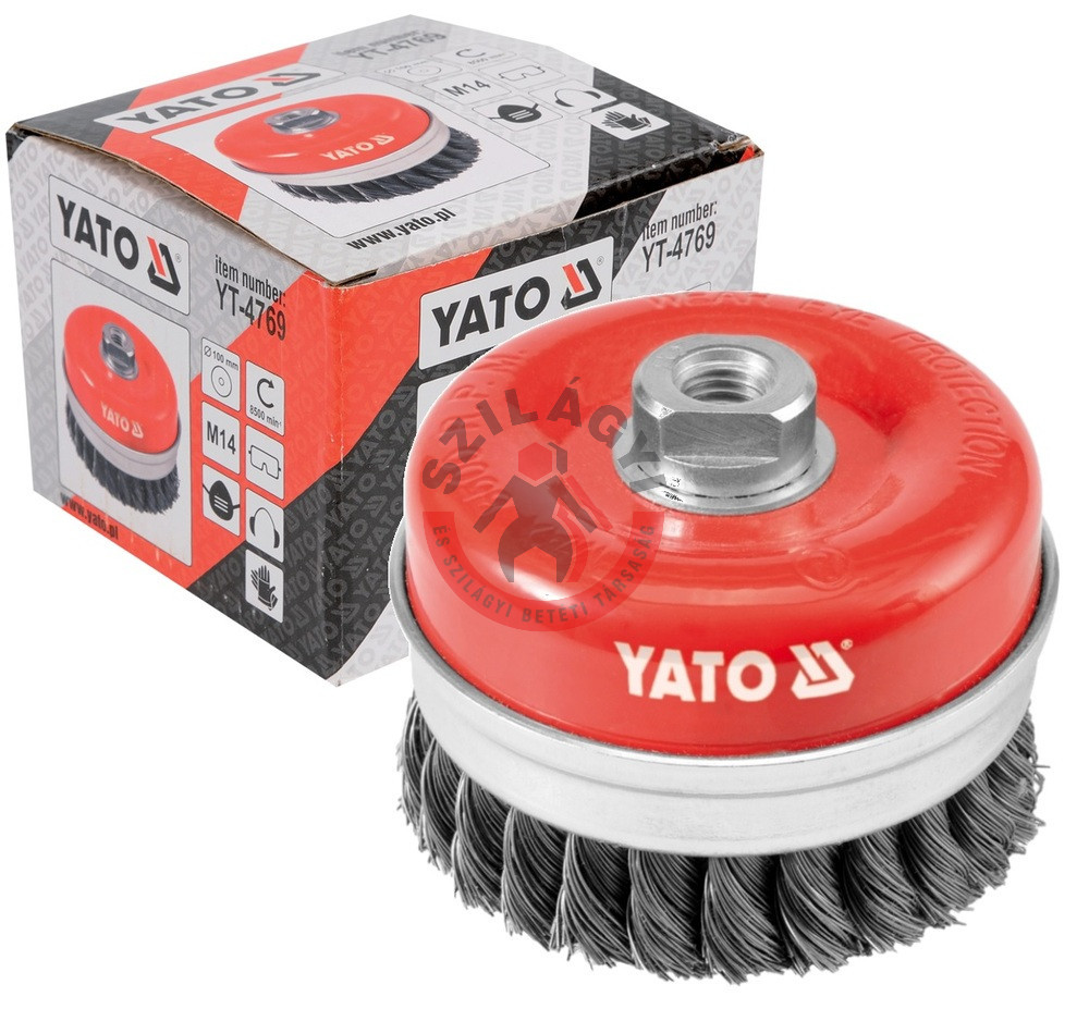 Fazékkefe acél csavart 100mm M14
