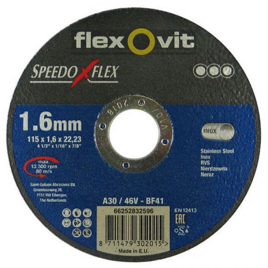 Flexovit Speedoflex vágókorong 115x1,6x22,2mm, BF41, fém-inox