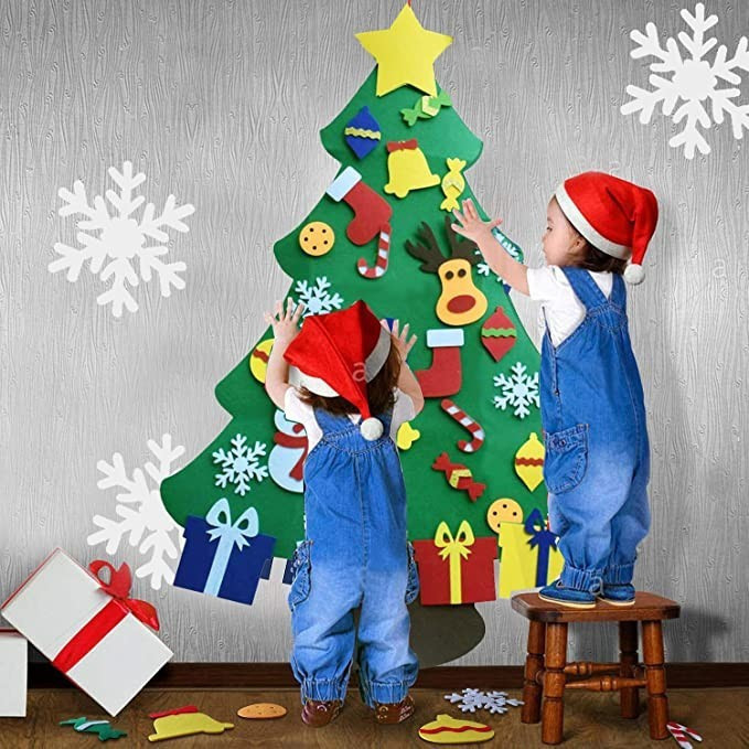 Nincsenek szúrós tűlevelek, törékeny szilánkos díszek. Gyermekbarát filc anyagból készült, hogy a kicsik is ki vehessék részüket a karácsonyfadíszítésből. A díszeket tépőzárral tudjátok rögzíteni. A karácsonyfát a ház bármelyik pontján rögzíthetitek, ehhez kétoldalú ragasztót ajánlunk.