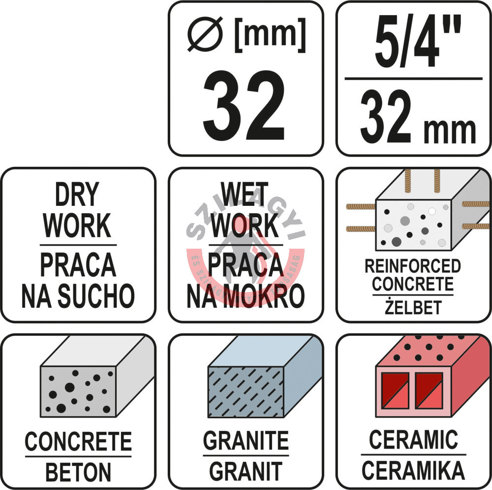 A szegmensben lévő puha kobaltréteg lehetővé teszi a "kézzel" történő fúrást a vasbeton dobozok alatt, a gyémánt feltárásával, állvány használata nélkül.