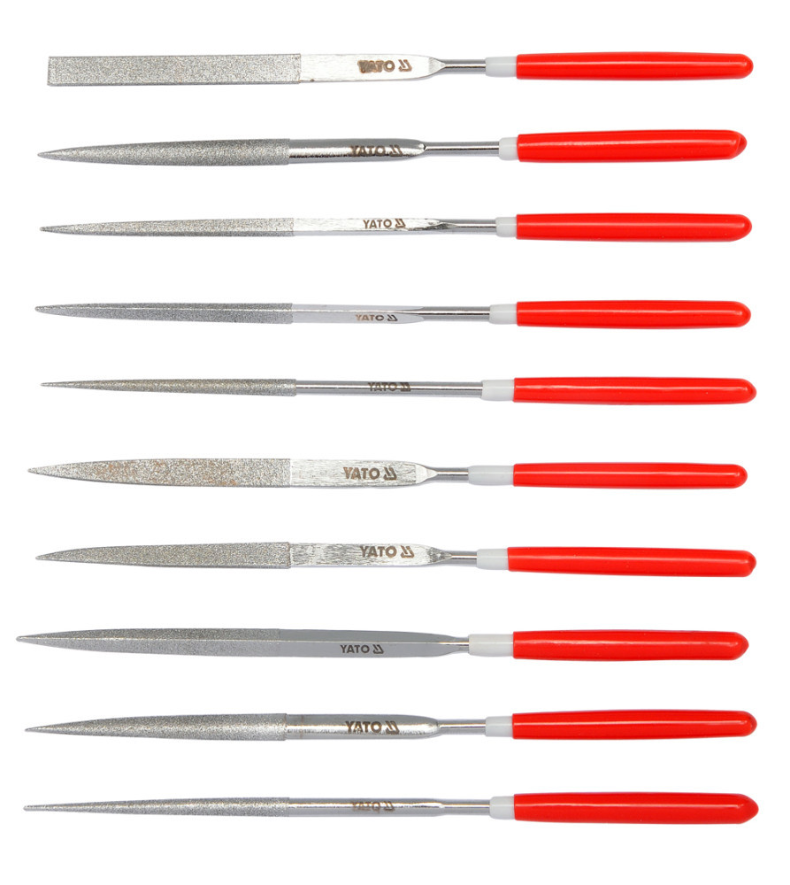 Kiváló minőségű tíz részes gyémánt tűreszelő készlet, professzionális használatra.