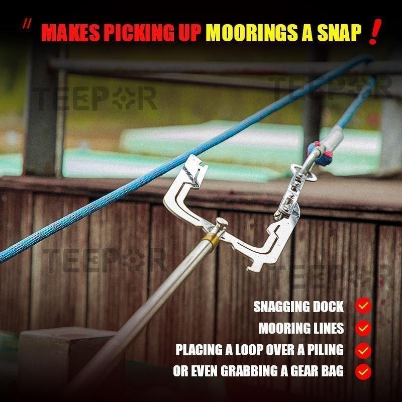 Ez egy nagyon veszélyes mutatvány, melyet célszerűbb elkerülnöd! A Hajó Kikötő Szerszám ebben segítségedre lesz! Egyszerűen helyezd fel a kampóra a kötelet, majd bármilyen hosszú nyél segítségével, nyúlj a beakasztani kívánt kikötőbika felé, és akaszd be! Bármilyen nyél megfelelő erre a feladatra, hiszen a csavar segítségével bármilyen mértékben ráfeszítheted a fejet, így az biztosan meg fogja tartani azt!