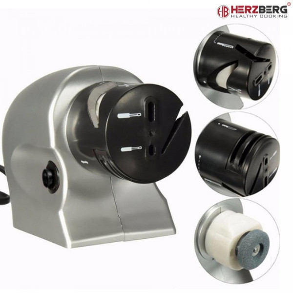 Használata és karbantartása egyszerű! Fémpor gyűjtő tálcával! Ergonomikus kialakítás!A Herzberg HG-8100 elektromos/kézi élező úgy működik, hogy automatikusan ideális szögben tartja a kést az élezési folyamat felgyorsítása érdekében. A professzionális minőségű zafír élező kerekek ezután percek alatt megélesítik a kést.Fogazott és sima pengékhez alkalmas. Másodpercek alatt megélezi a késeket, ollókat és csavarhúzókat.Professzionális minőségű zafír élező kerekeket használ. A pengevezetők automatikusan az ideális szögben tartják a késtÉlesíti és csiszolja a tompa pengéket egyetlen lépésben.Az ergonomikus fogantyú kényelmes fogást biztosít, az ABS anyag pedig segít megállítani a csúszást.Az alatta lévő gyűjtőtálca összegyűjti az összes fémport.Termék tulajdonságai:Szín: ezüstAnyaga: ABS + rozsdamentes acél + volfrámacél + kerámiaEnergiahatékonyság: A osztályTápfeszültség: 230 voltMérete: 15 cm x 6 cm x 8,5 cm (HxSzxM)Teljesítmény: 20WMit rejt a termék csomagolása?1 db Herzberg elektromos/kézi élezőt és 1 db használati utasítást.