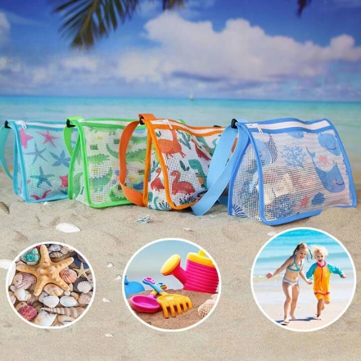 A hagyományos táskákkal ellentétbe, a hálós szerkezete átengedi a homokszemeket, s elkerülheted azt, hogy kéretlen helyre kerüljenek.