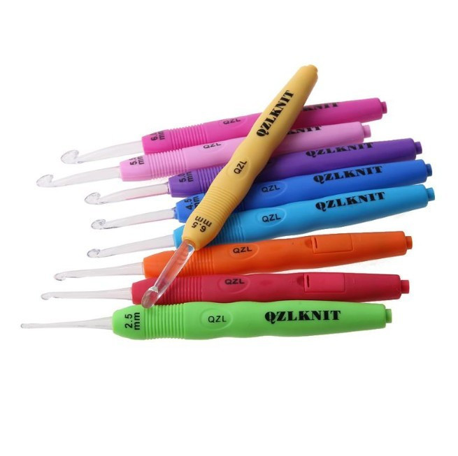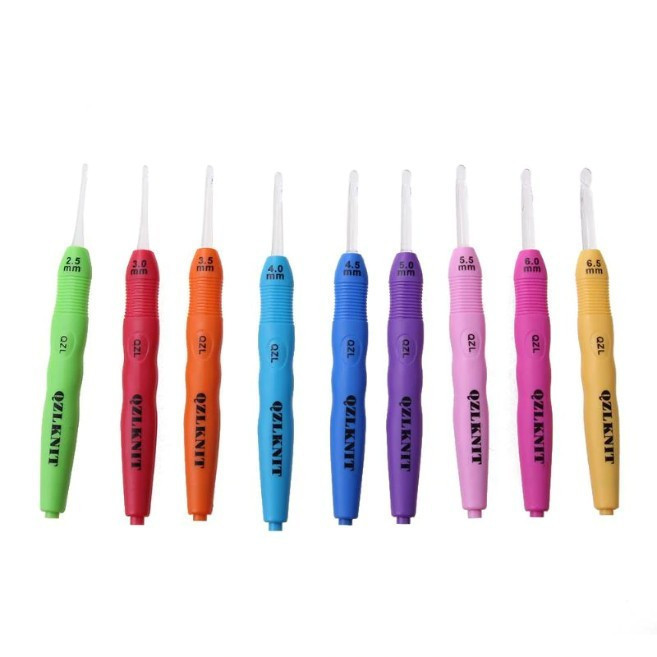 A készlet 9 db alumínium horgolótűt tartalmaz, ergonomikus nyéllel, a következő méretekben: