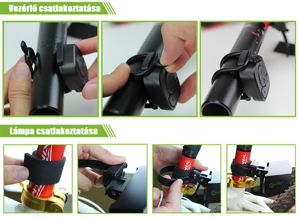A biciklis lámpa felszerelése nagyon egyszerű, pár perc alatt telepíthető.