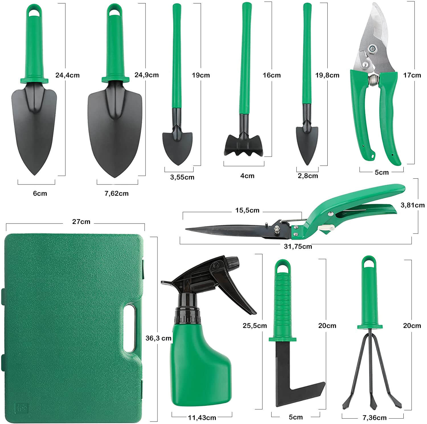 A szerszámok fejei rozsdamentes acélból készültek, amely kialakítás szavatolja számodra a tartósságot, s a minőséget. Azonban nem kell attól aggódnod, hogy ez kikezdi a tenyered, mert a fogantyúk ergonomikus, csúszásmentes kialakítással rendelkeznek, amely csökkenti a kézre nehezedő nyomást, és gyorsabbá és teszi a kertészkedést.