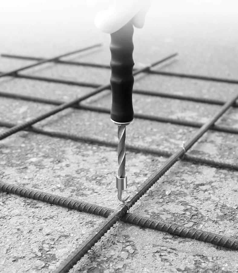 Ezzel a kézi betonvas gyorskötöző szerszámmal garantáltan nagyon gyorsan, hatékonyan és egyszerűen lehet a betonvasak, kengyelek kötöződróttal történő rögzítését elvégezni. Az egyszerűen kezelhető, kényelmesen a kézbe illeszkedő puha gumis markolatú szerszám horgába, a már előre legyártott füles rögzítődrótok két végét beakasztva, a termék félautomata működésének köszönhetően néhány, rövid húzómozdulattal elvégezhető a rögzítés. Építésekhez, kőműveseknek, burkolóknak hatalmas segítséget nyújtó szerszám.