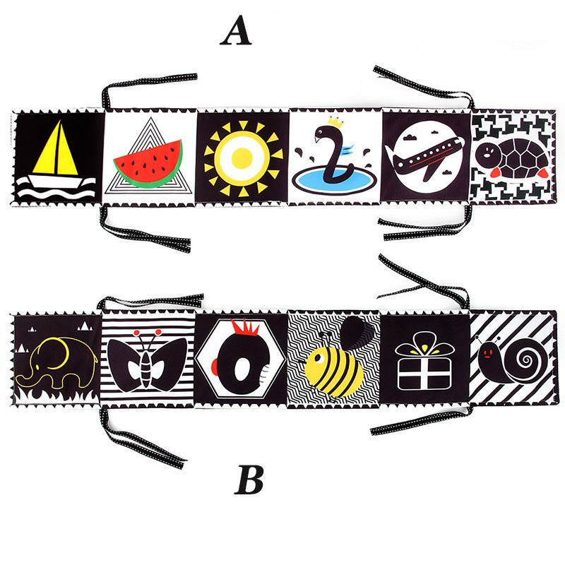 Ezek az egyszerű, de lenyűgöző kontrasztok elbűvölik a pici babák figyelmét, és hozzájárulnak a vizuális észlelés fejlődéséhez.