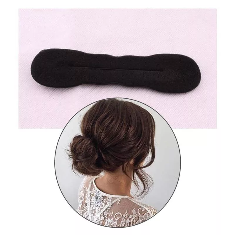4. Hajlítsd össze kör alakban a konty készítőt, majd igazítsd el a szivacson a hajad úgy, hogy az egyenletesen takarjon.