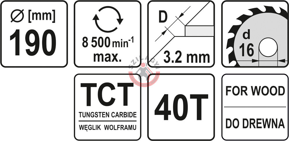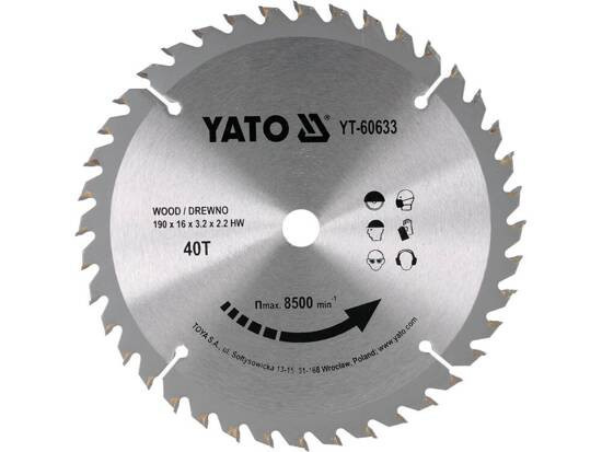 Körfűrésztárcsa (fa) 190x16x3,2mm T40
