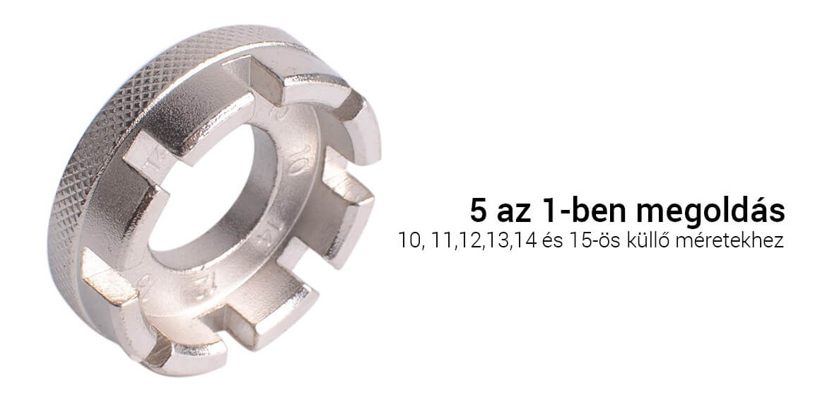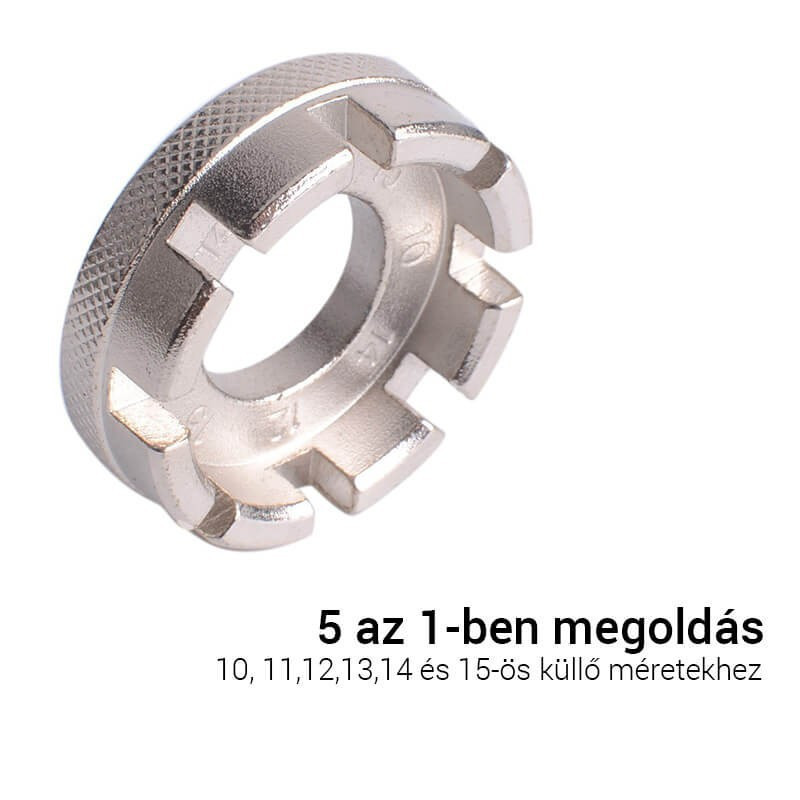 Mivel ötféle küllőanya méret van a kulcson, könnyen megigazíthatod a kilazult küllőidet.