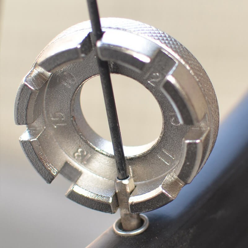 A küllőigazításon túl kerékcentrírozásra is alkalmas a küllőkulcs. Otthoni szereléshez, kerékpárépítéshez és útközbeni vészhelyzetek esetén is használhatod.