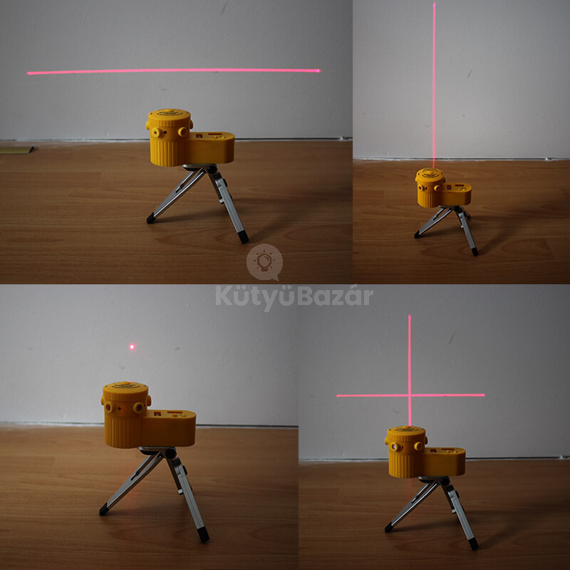 Használata rendkívül egyszerű. Csak helyezd el a szintezőt a kívánt pozícióba és tedd rá az állványra, amely a készülékkel együtt jár. (A kütyü multifunkciós, így a legtöbb tripod állványra felhelyezhető.) Miután felhelyezted az állványra a terméket, állítsd be a kívánt pozícióba és már mérhetsz is vele. Azonnal megmutatja a számodra tökéletes vertikális és horizontális vonalat, mindezt egy keresztlézerrel.