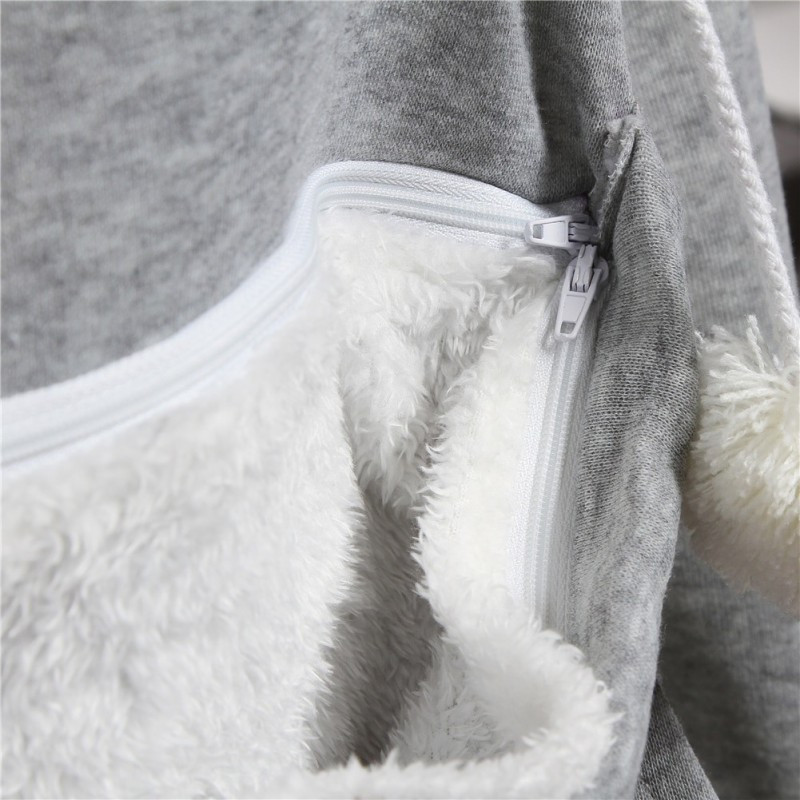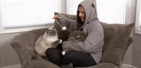 A pulóver zsebe nagyon puha és meleg, ami a cicák nagy kedvence. A kapucni zsinórja végén lévő két gombolyag segít lekötni négylábú nyávogód figyelmét, hogyha épp másra kell figyelned. A zseb méretéből adódóan még kisebb méretű kutyák is könnyedén elférnek benne, így a kutyusos gazdiknak is ajánlott. A pulóver kapucniján aranyos fülek találhatóak, és a pulcsi ujja végét mancs nyomok díszítik.