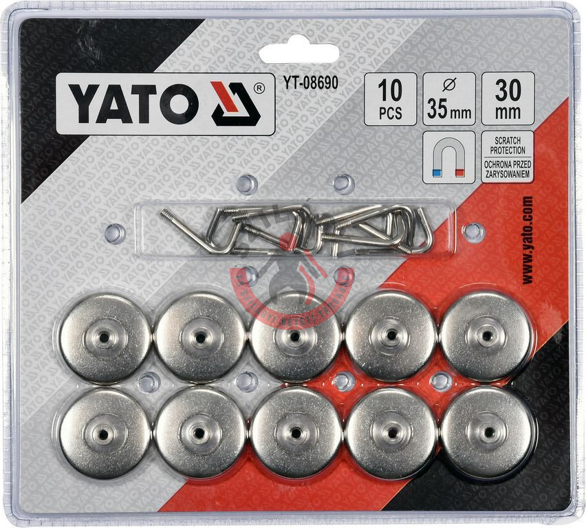 Acéllemezből készült 10 db-os kampós készlet, kis szerszámok, kiegészítők stb. falra vagy szerszámszekrényre történő felakasztására. Lehetővé teszik, hogy bárhová rögzítse őket, gyors hozzáférést biztosítva a munkahelyen használt felszerelésekhez.
