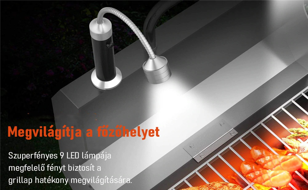 Nincs több odaégetett húspogácsa vagy sületlen kolbász, hisz a terméket akár közvetlenül a grillezőre helyezheted mágneses talpának köszönhetően. Az erős mágneseknek és hőálló tulajdonságának hála pedig nem kell aggódnod a lámpa épsége miatt, hiszen nem fog megolvadni vagy leesni. A kütyü hajlítható nyakkal rendelkezik, így mindig a megfelelő helyre irányíthatod a fényét.