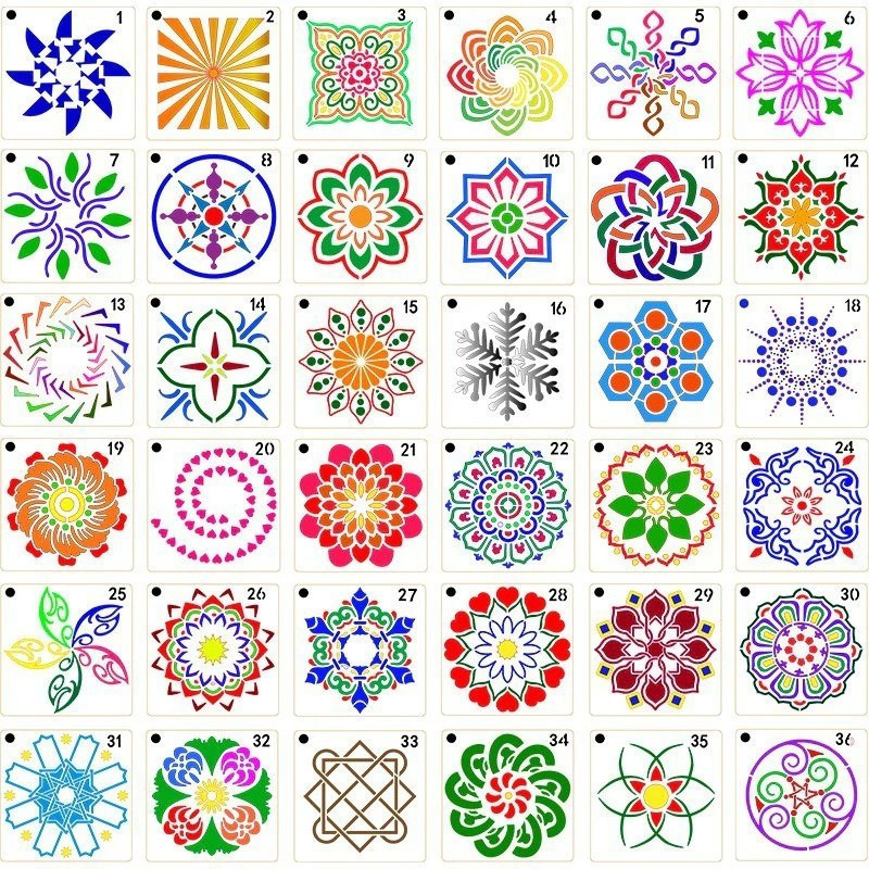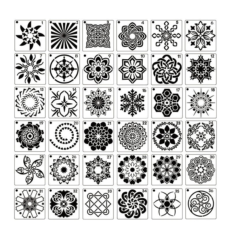 36 db Mandala stencil, rajzsablon