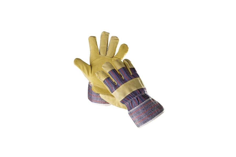Kombinált védőkesztyű marha hasított bőrből, bélelt tenyérrel, kézfej és mandzsetta pamutból.