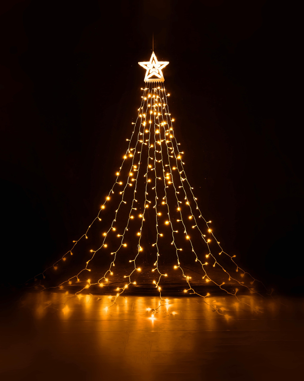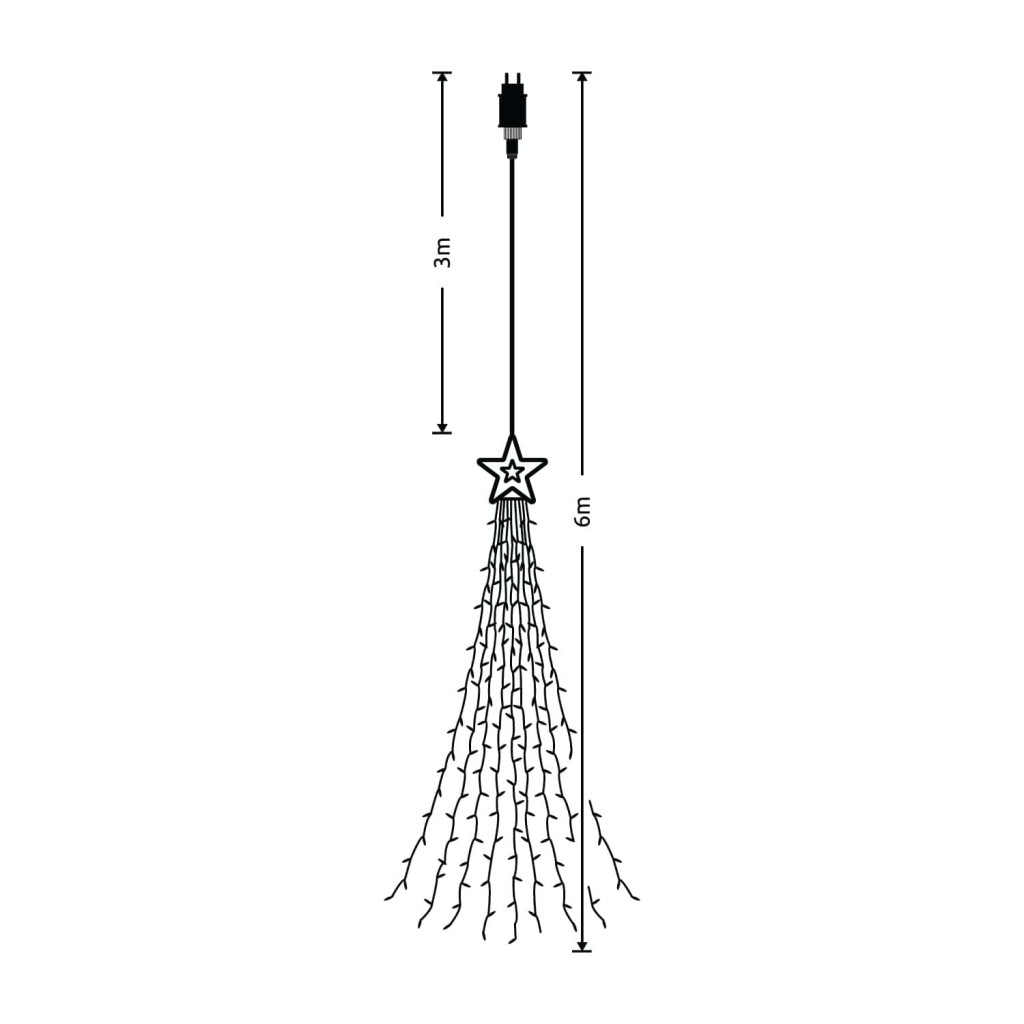 Méreteit tekintve 6 méter hosszú, ez a hossz meg van felezve, a felénél elhelyezkedő nagy szintén világító csillagból lógnak le a 3 méter hosszú kábelek, amikre összesen 300 darab LED chip van szerelve. Felhelyezése roppant egyszerű. Csatlakozás szempontjából EU szabvány dugvillával csatlakoztatható a hálózatra.