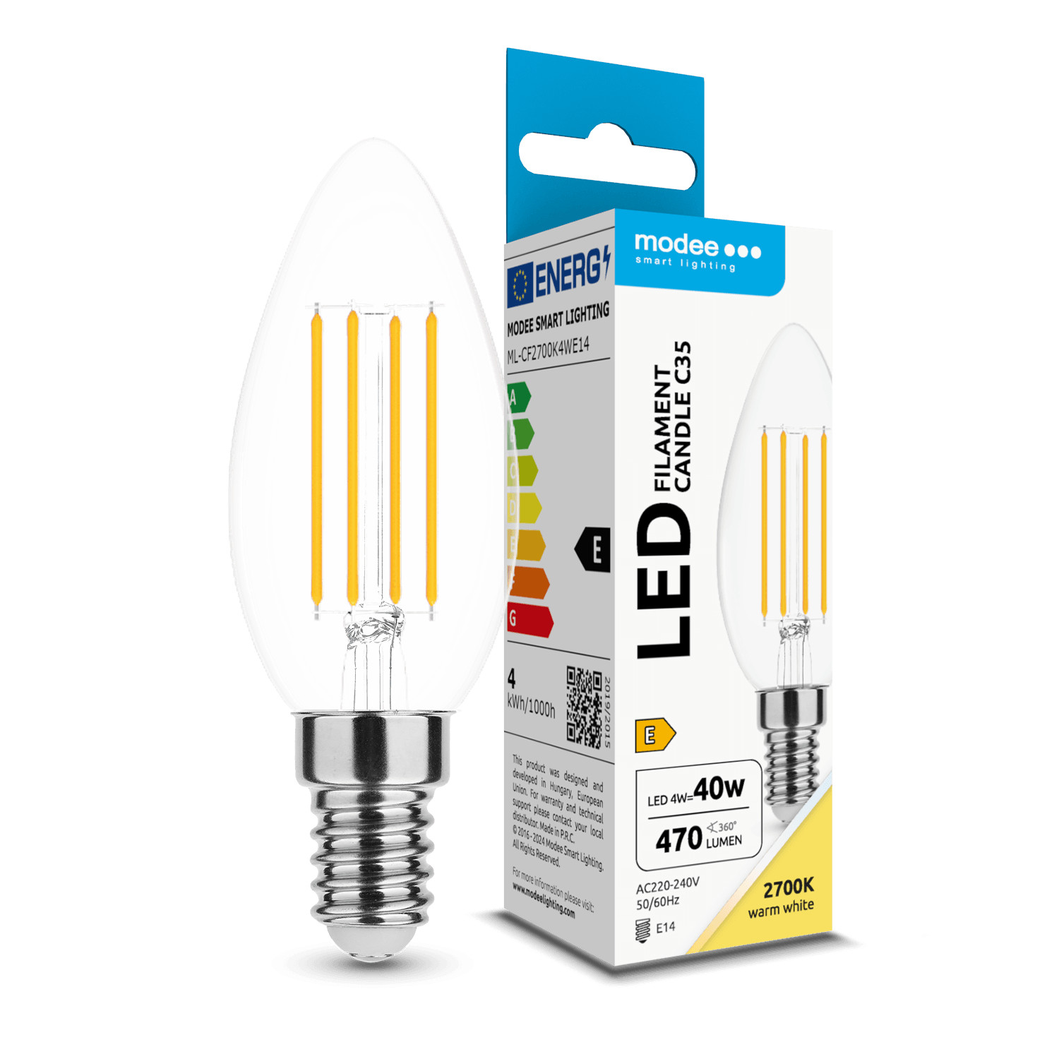 Modee LED Izzó Filament Gyertya C35 4W E14 360° 2700K (470 lumen) ERP