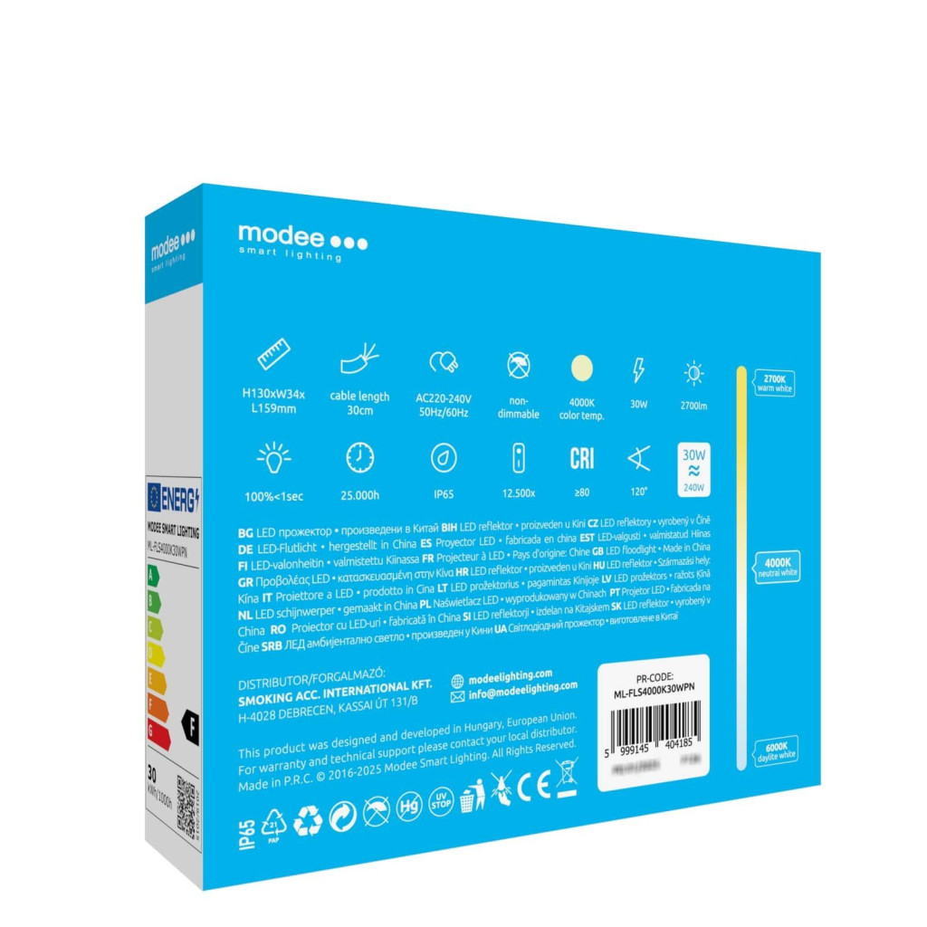 Ez a reflektor 30 Watt teljesítménnyel rendelkezik, amely egy hagyományos 240 Wattos reflektort képes kiváltani. A 30 Wattos fogyasztás mellett 2700 lument biztosít, így fényhasznosítása 90 lumen/WattHálózati feszültsége AC220-240V, amely stabil működést garantál kisebb áramingadozások mellett is. 120°-os világítási szöge révén nagyobb kültéri területek megvilágítására is ideális. Kiváló választás lehet garázskapuk, raktárépületek külső világításához, valamint kertek és teraszok fényforrásaként.