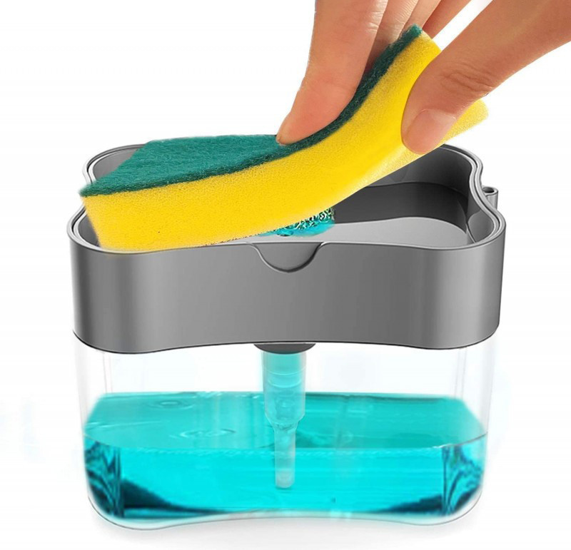 A tartályba töltsd bele a mosogatószert vagy szappant, tedd rá az adagoló tetejét és már használatra kész. Alkalmazásához helyezd a szivacsot a felül lévő mélyedésbe és nyomd le!