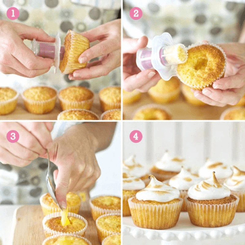 Használata csupán pár mozdulat. Segítségével könnyedén lyukakat vájhatsz a sütemények belsejébe, amit aztán minden féle jóval megtölthetsz. Csupán a képzeleted szab határt.